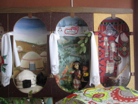 В 2003 году через издательство «Взгляд», г. Челябинска вышли из печати авторское наглядно-дидактическое пособие: комплект наглядно-дидактических посо-бий «НАРОДНЫЕ УЗОРЫ», «В ГОСТЯХ У ХОЗЯЙКИ МЕДНОЙ ГОРЫ», раскраска «НАРОДНЫЕ ПРОМЫСЛЫ», которые способствуют расширению и уточнению пред-ставлений детей о декоративно-прикладном искусстве народов Урала. Игры разработаны педагогами нашей «Жемчужинки» под руководством директора Л.А. Москвиной. В «Уральских промыслах» детям предлагается раскрасить по образцу рисунки, изображающее малахитовую шкатулку, каслинское литьё и другие символы нашего края. В игре «Народные узоры» ребята учатся конструировать русскую избу, украшать предметы русского быта. Татарский быт представлен тюбетейкой и сапожками, дети должны их расцветить как и башкирские ковры. Игра «Хозяйка Медной горы» знакомит детей с творчеством писателя П.П. Бажова, с камнями самоцветами Урала. Важно то, что эти игры не лежат в запасниках- они используются в воспитании и развитии детей старших групп «Жемчужинки».